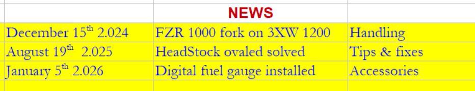 The way to make my own web in 2003 was speaking about my near 30 years experience with motorbikes and compare the modifications and tune- ups that I have done to my 9 FJs along the time, riding on them more than 500.000 kms. (two 36Y FJ 1100, two 1TX 1200, four 3 CV FJ 1200s and one 3XW) with the objective to be useful to all of you who are , like me , in love with the FJ model.
