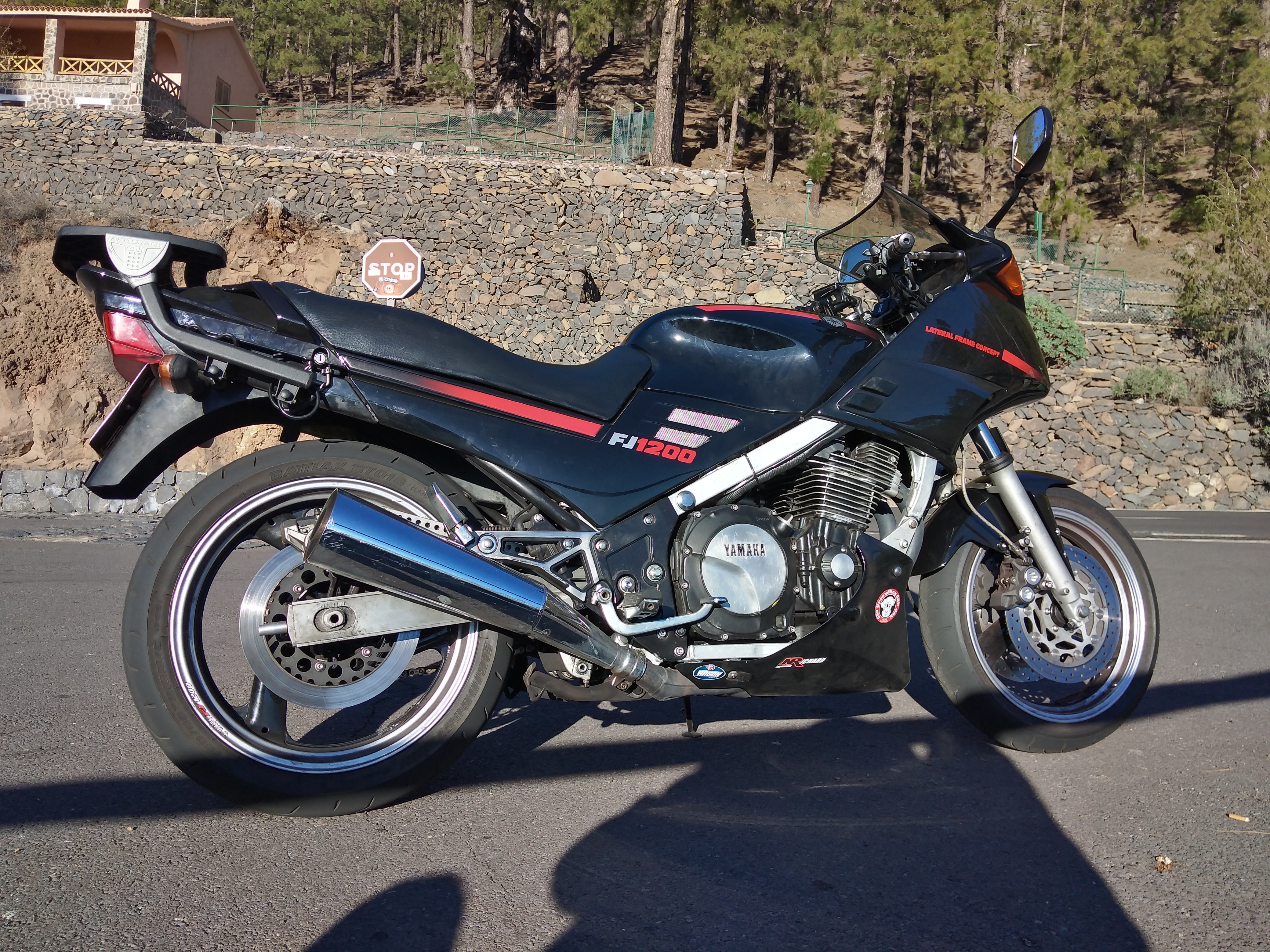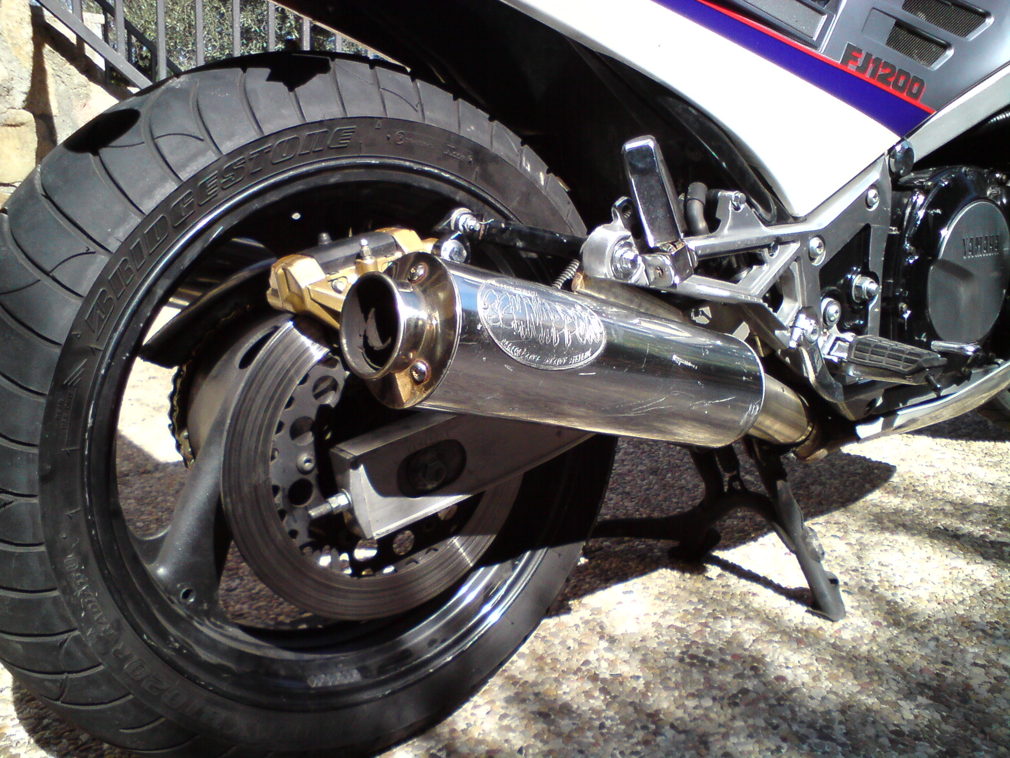 Con los reglajes de los F1 que mantenía a pesar de haber vuelto a los escapes originales (eran demasiado ruidosos), he montado unos escapes en acero que fabrican a mano, que son más abiertos que los originales, pero sin ser demasiado escandalosos. Está claro que la potencia de las FJ se libera en el escape: monté estos escapes después de probar las motos de Mingo (con escapes Neta) y la de Edu, ambas del modelo 1TX de 1986, las 2 con KN y con la carburación original. Y la moto de Edu se siente muchísimo más potente en toda la gama de revoluciones a pesar de ser contrario a los inventos caseros, no me han defraudado: la fabricación es cuidada, ajustan perfecto, son preciosos, suenan graves pero no escandalosos... y la moto anda MUCHO, pero que MUCHO más.