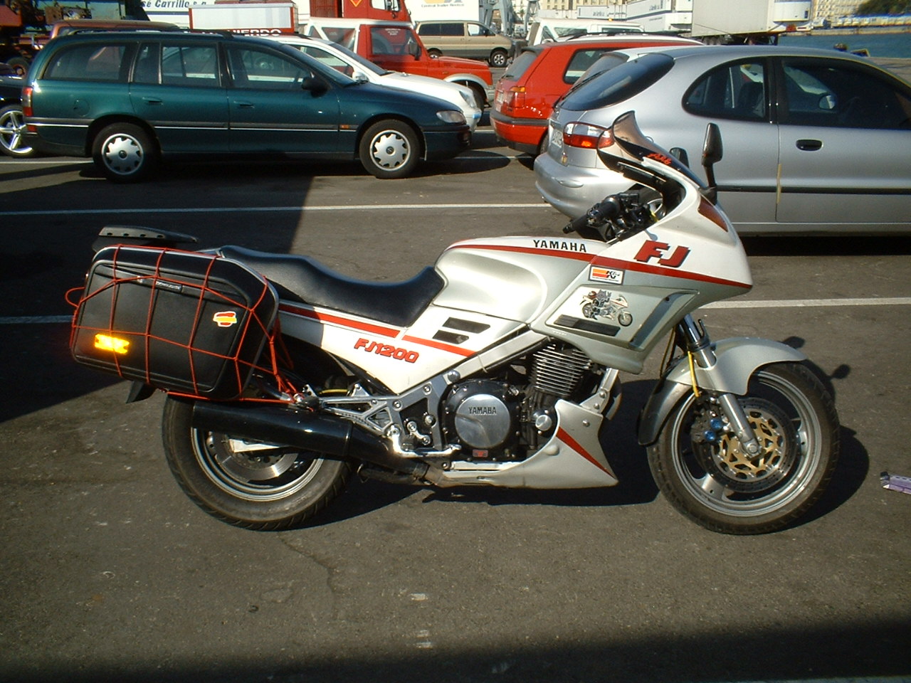 Están fabricadas por Hepco and Becker específicamente para la Yamaha FJ 1200. Mi amigo JC las compró en eBay y cuando vendí mi 3XW las trasplanté a mi 3 CV actual. Los anclajes son estupendos, sin vibraciones y sin romper nada. Además se desmontan fácilmente no estropeando la estética de la moto si no llevas maletas, dejando sólo el trasportín. Monté una parrilla Kappa con bridas para llevar el baúl Givi.